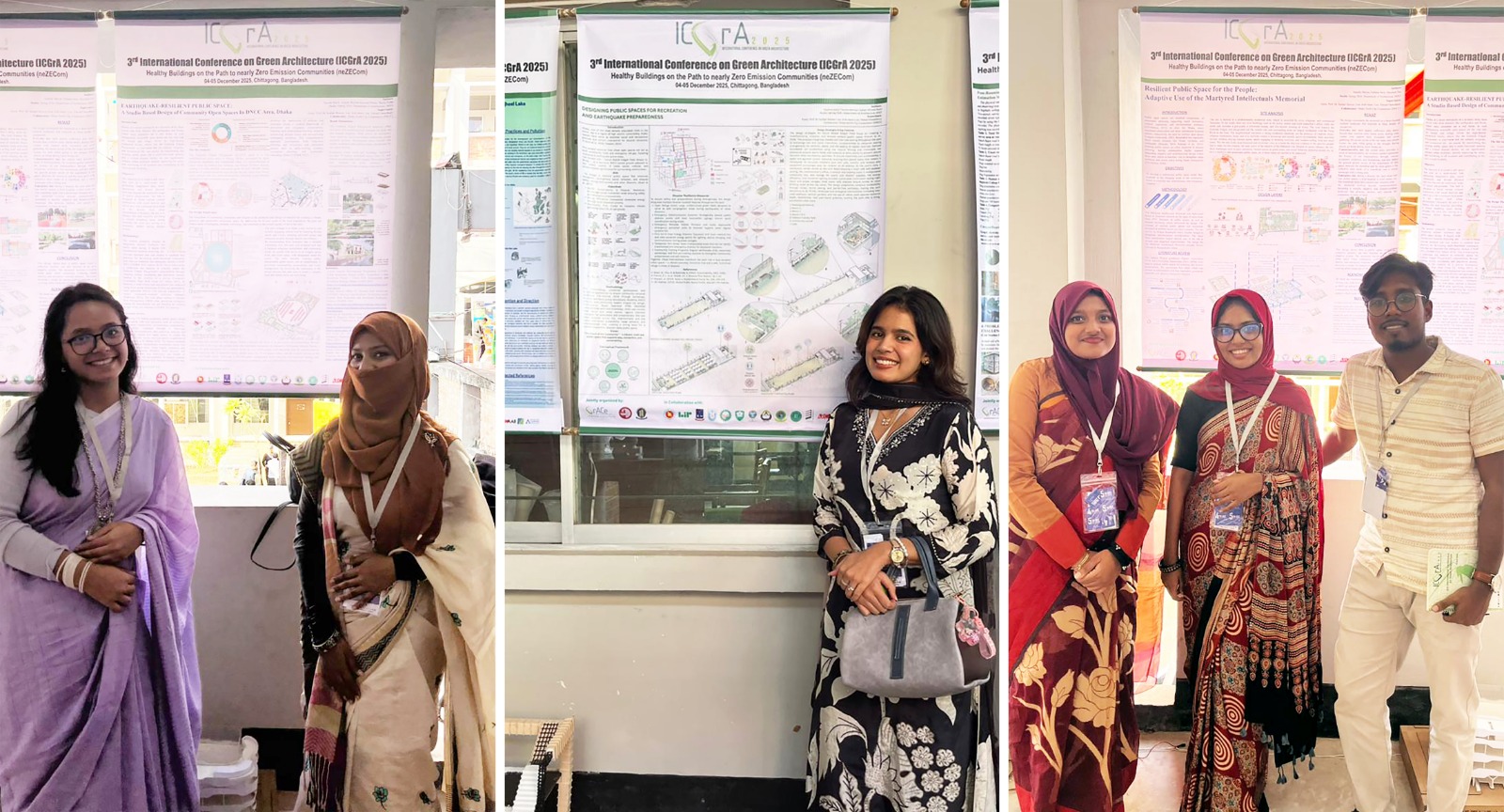 Six students from ARCH 7 showcased their work through poster presentations. Sayeda Amrin Anjum and Shaily Sinha presented a poster titled “Earthquake-Resilient Public Space: A Studio-Based Design of Community Open Spaces in the DNCC Area, Dhaka.” Sayema Iqbal presented “Designing P... Read More