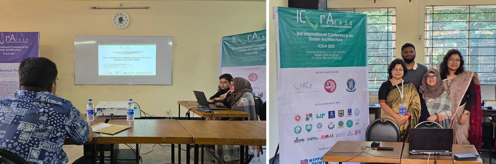 Associate Professor Dr. Sudipti Biswas, Major Md. Raisul Mostafa Sajib, Lecturer Anika Sharmila, and former Lecturer Afeefa Adeeba Rahman presented a research paper titled “Impact of Orientation on Daylight and Energy in Educational Buildings: A Case Study in Dhaka.” The paper discusses... Read More