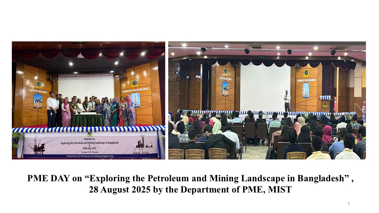 A seminar on Exploring the Petroleum and Mining Landscape of Bangladesh& PME Day 2025 was organized by PME Dept on 28 August, 2025. A total of 138 students participated in the seminar along with faculties from different universities. Students were engaged in an interactivesession with speakers. Read More