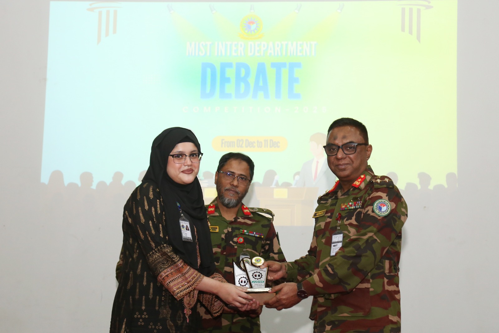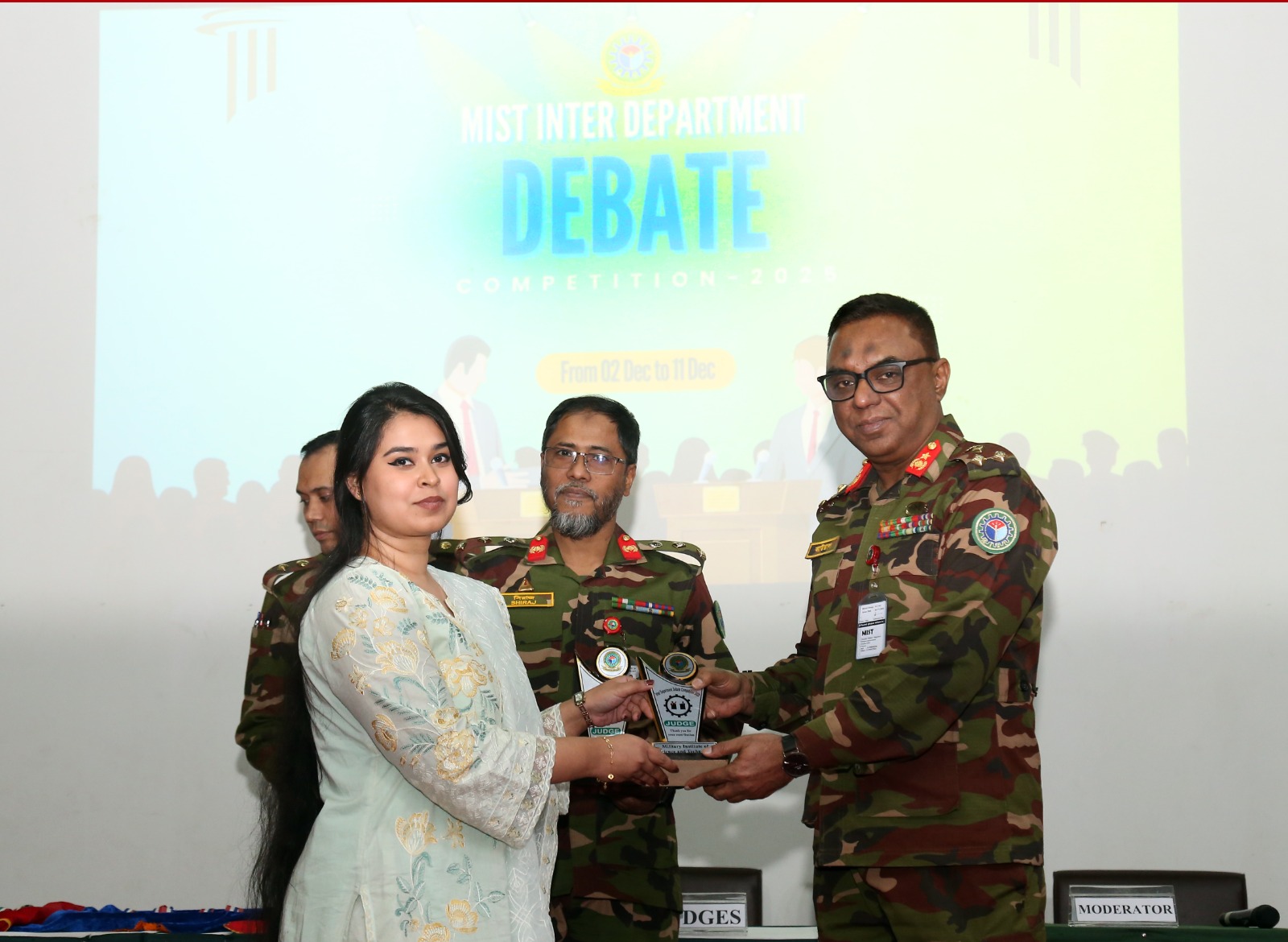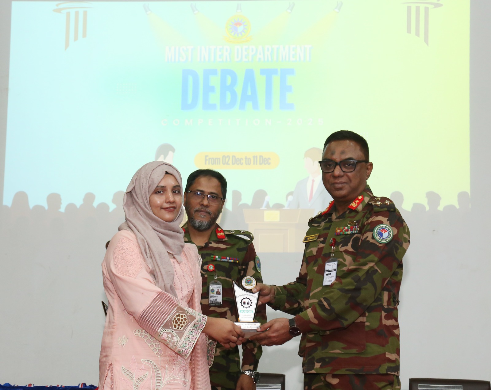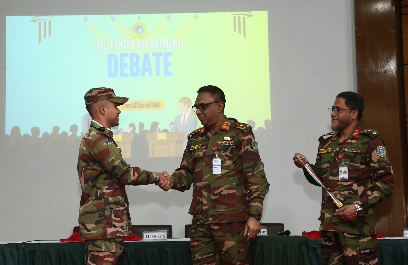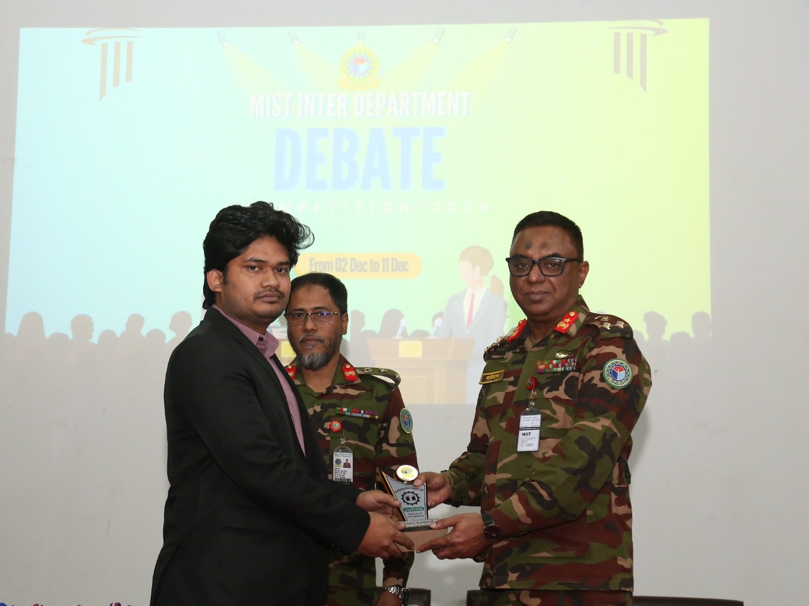 Starting on 2nd December 2025, MIST Inter-Department Debate Competition 2025 formally concluded today, 11 December 2025. The Department of EECE emerged as the Champion, while the Department of IPE secured the position of Runner-up. Brigadier General Md. Awal Khan, Head of the Department of Mechanical Engineering, graced the closing ceremony as the Chief Guest. The competition was organized under the supervision of the Department of Science and Humanities, in collaboration with the MIST Debating Society.