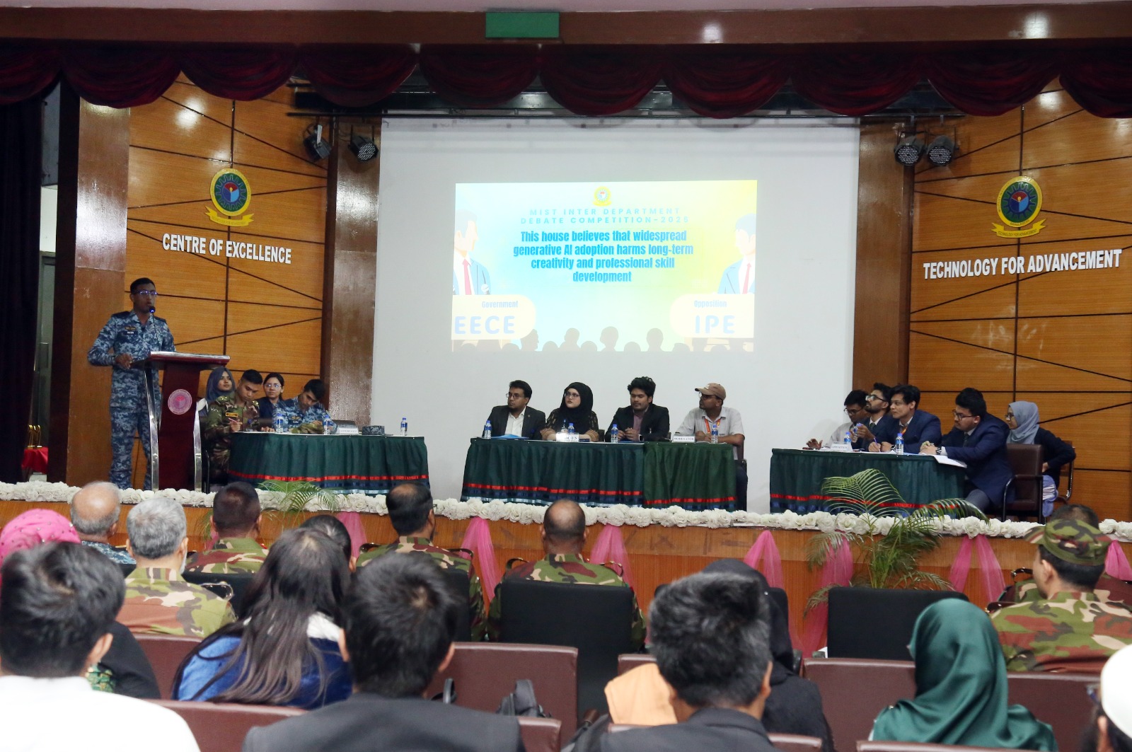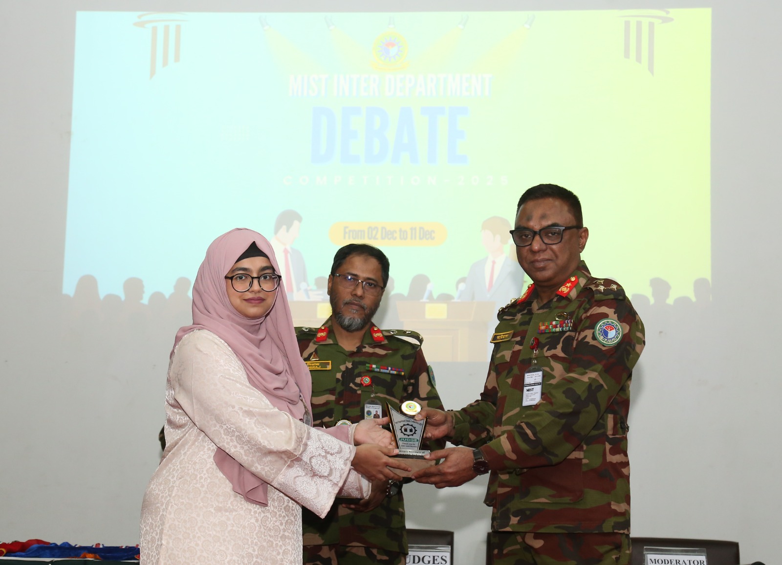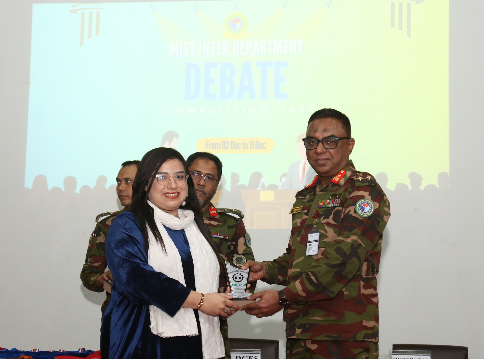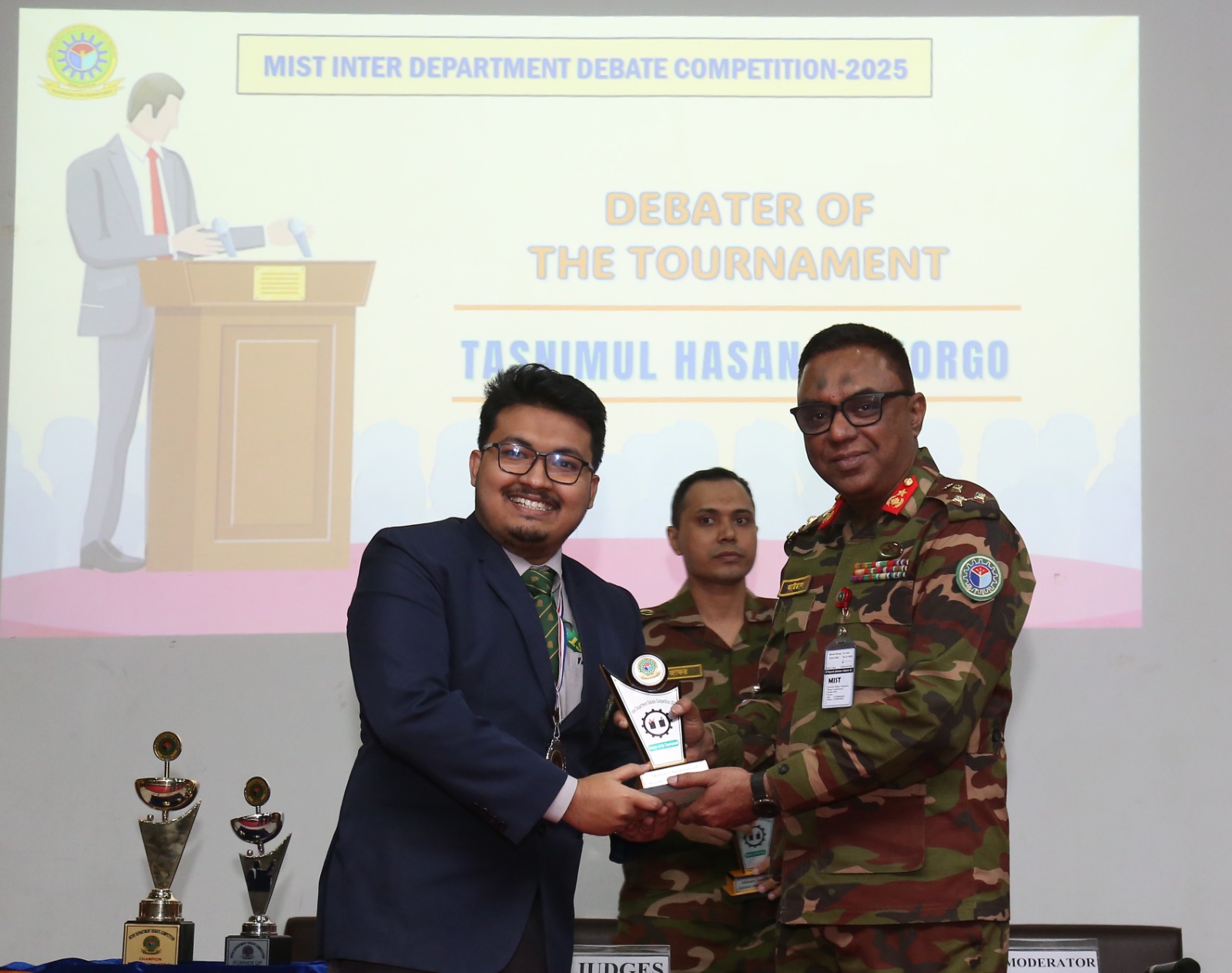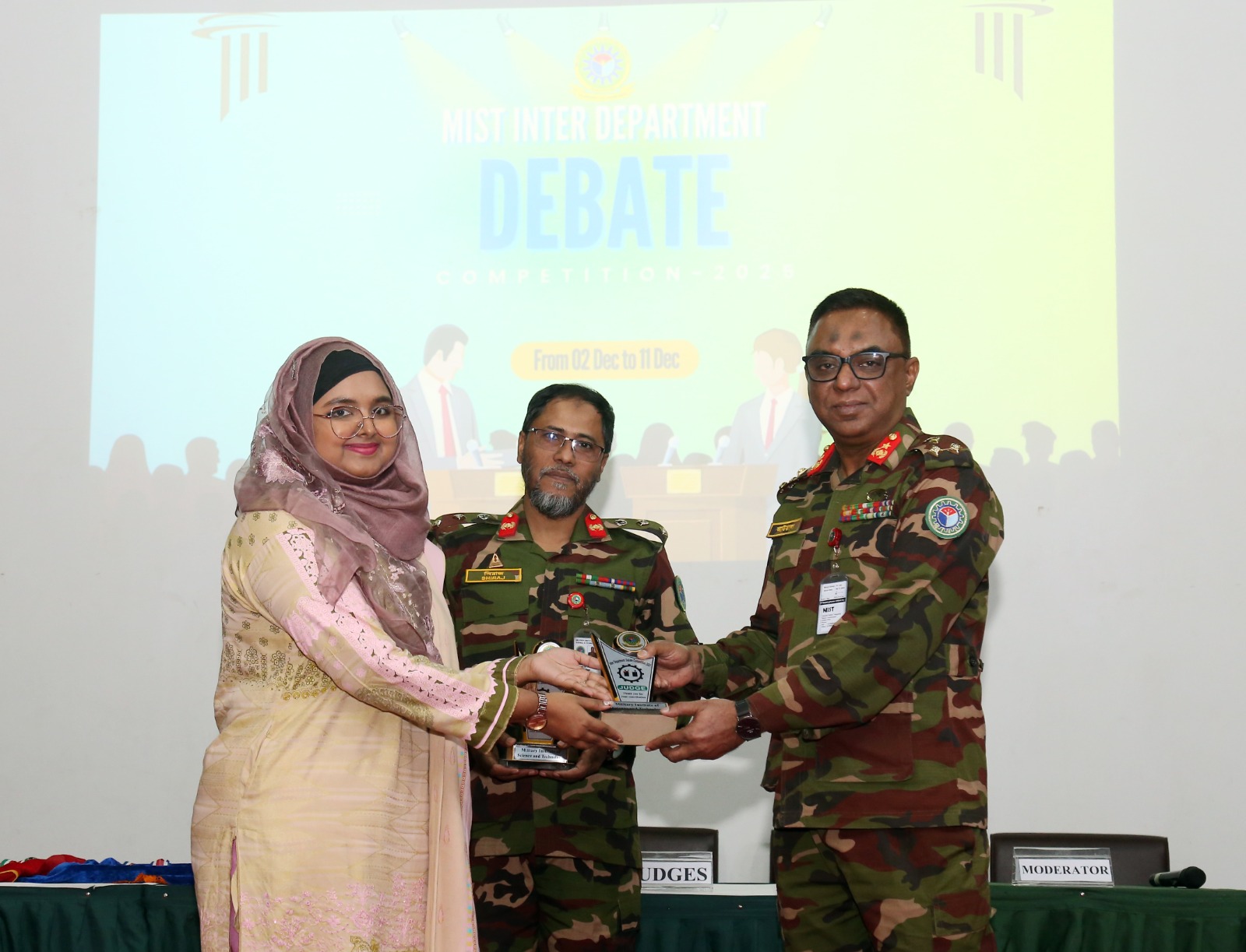 Starting on 2nd December 2025, MIST Inter-Department Debate Competition 2025 formally concluded today, 11 December 2025. The Department of EECE emerged as the Champion, while the Department of IPE secured the position of Runner-up. Brigadier General Md. Awal Khan, Head of the Department of Mechanical Engineering, graced the closing ceremony as the Chief Guest. The competition was organized under the supervision of the Department of Science and Humanities, in collaboration with the MIST Debating Society.